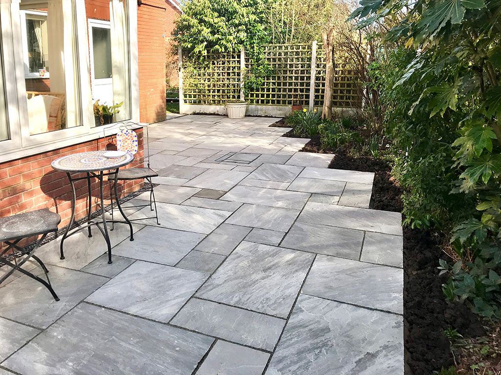 Natural stone patios: For a timeless and classic look, nothing beats natural stone. Options like sandstone, limestone, and slate provide a rustic yet elegant feel that complements any garden style.